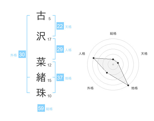 古沢 菜緒珠さんを姓名の画数から五運を鑑定