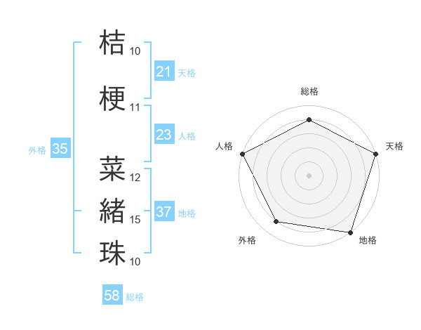 桔梗 菜緒珠さんを姓名の画数から五運を鑑定