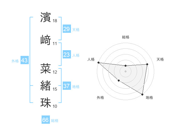 濱﨑 菜緒珠さんの総格は66画の1点