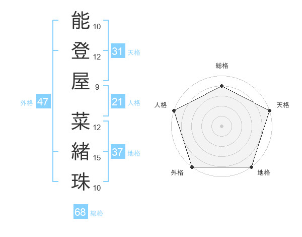 能登屋 菜緒珠さんの地格は37画の5点!
