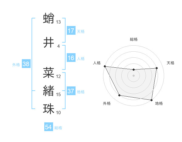 蛸井 菜緒珠さんの外格は38画の4点!