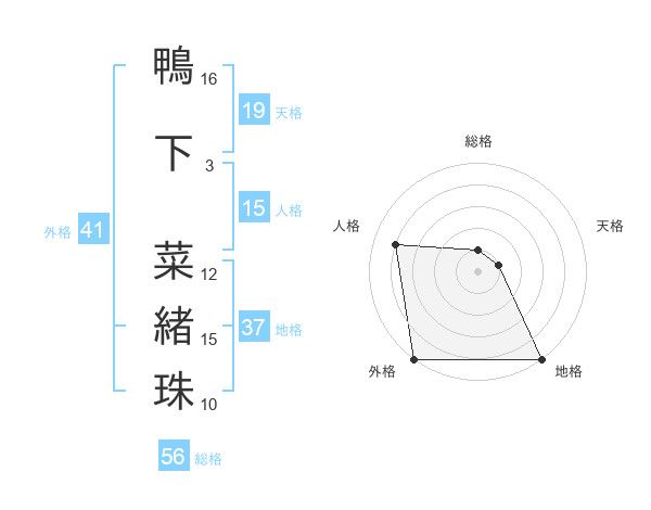 鴨下 菜緒珠さんを姓名の画数から五運を鑑定