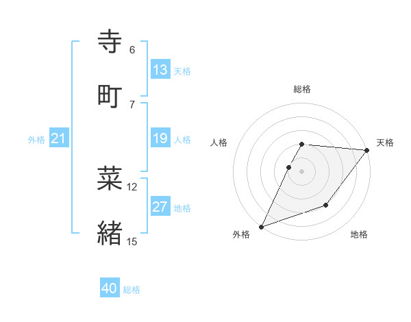 寺町 菜緒さんを姓名の画数から五運を鑑定