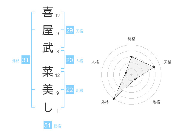 喜屋武 菜美しさんの総格は51画の3点!