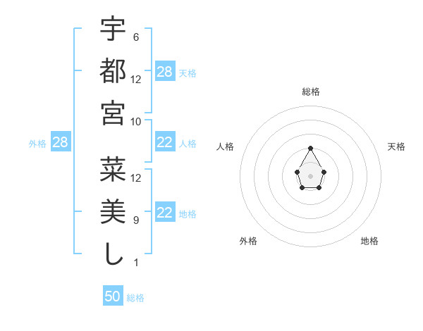 宇都宮 菜美しさんを姓名の画数から五運を鑑定