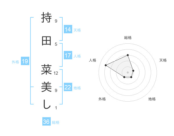 持田 菜美しさんの総格は36画の3点!