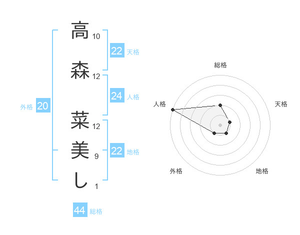 高森 菜美しさんを姓名の画数から五運を鑑定