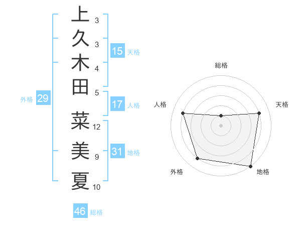 上久木田 菜美夏さんの総格は46画の1点!