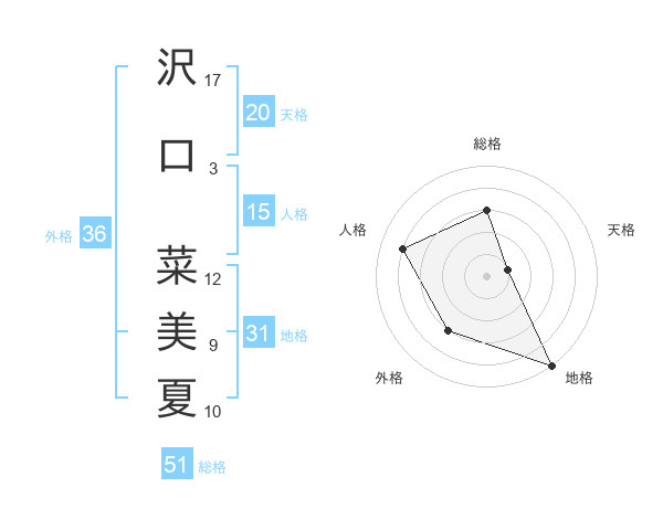 沢口 菜美夏さんの総格は51画の3点!