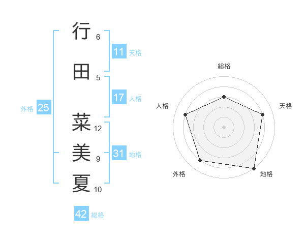 行田 菜美夏さんを姓名の画数から五運を鑑定
