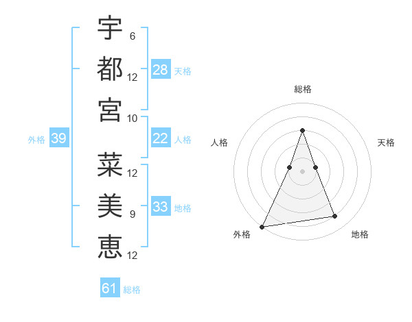 宇都宮 菜美恵さんの総格は61画の3点!
