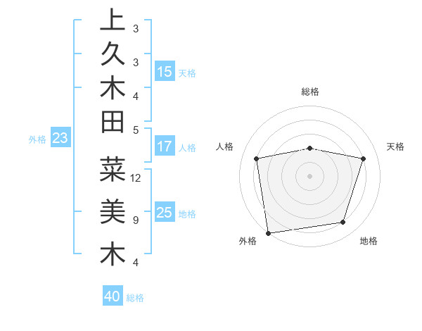 上久木田 菜美木さんを姓名の画数から五運を鑑定
