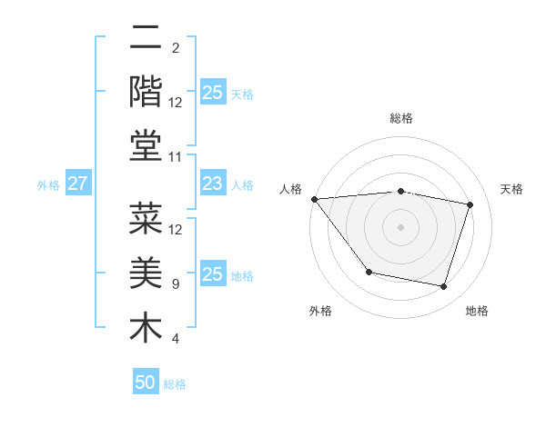 二階堂 菜美木さんの天格は25画の4点!