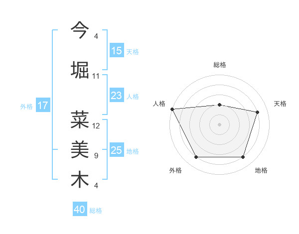 今堀 菜美木さんを姓名の画数から五運を鑑定