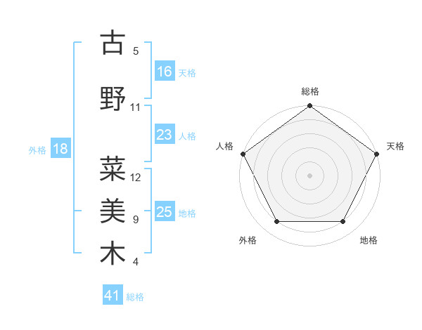 古野 菜美木さんの総格は41画の5点!