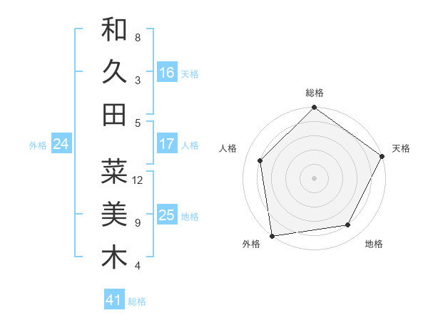 和久田 菜美木さんを姓名の画数から五運を鑑定