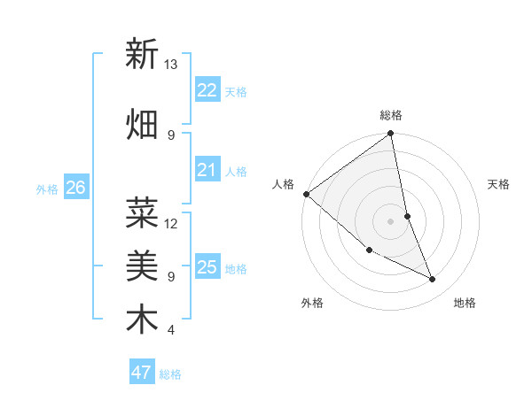 新畑 菜美木さんを姓名の画数から五運を鑑定