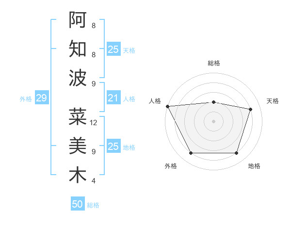 阿知波 菜美木さんを姓名の画数から五運を鑑定