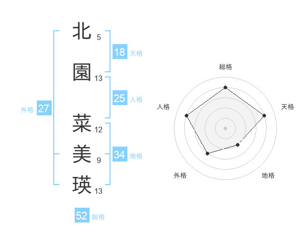 北園 菜美瑛さんを姓名の画数から五運を鑑定