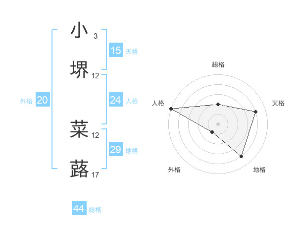 小堺 菜蕗さんを姓名の画数から五運を鑑定