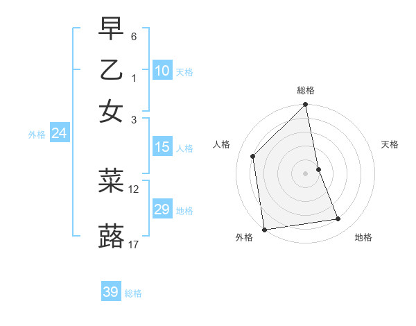早乙女 菜蕗さんを姓名の画数から五運を鑑定