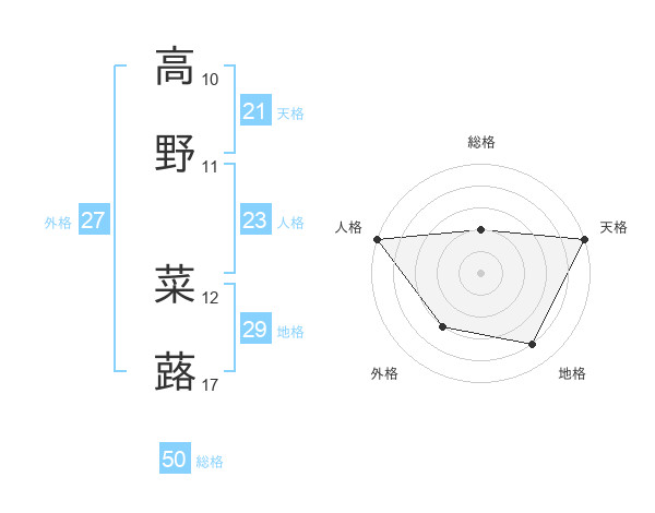 高野 菜蕗さんを姓名の画数から五運を鑑定
