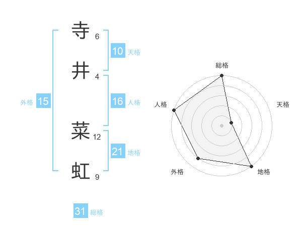寺井 菜虹さんの総格は31画の5点!