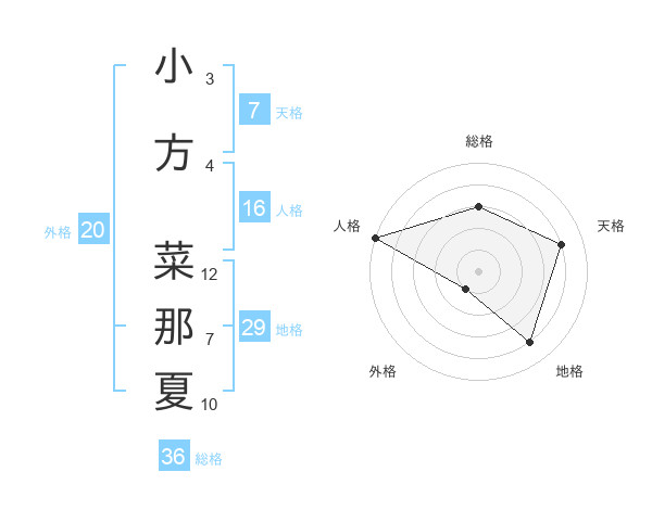小方 菜那夏さんを姓名の画数から五運を鑑定
