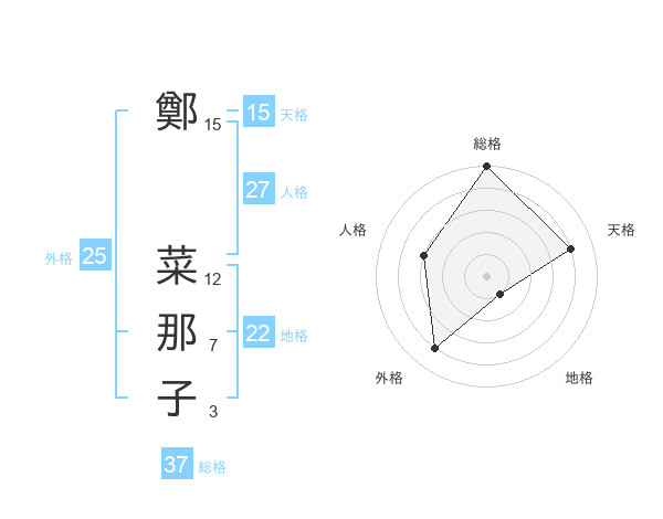鄭 菜那子さんの総格は37画の5点!