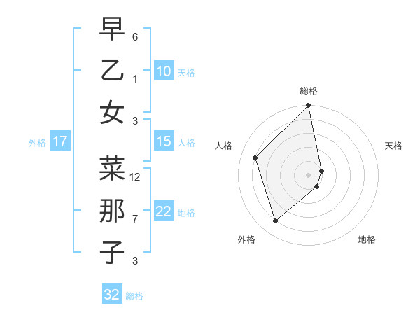 早乙女 菜那子さんを姓名の画数から五運を鑑定