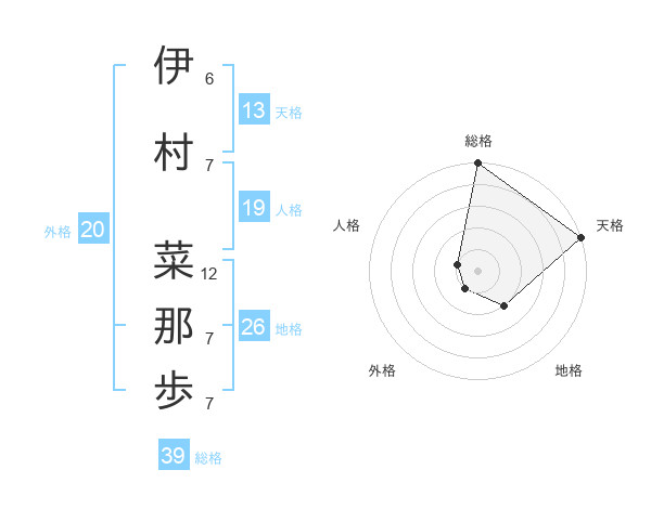 伊村 菜那歩さんを姓名の画数から五運を鑑定