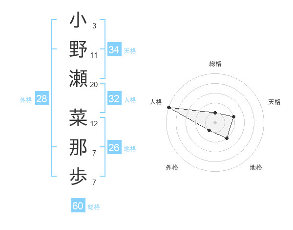 小野瀬 菜那歩さんを姓名の画数から五運を鑑定