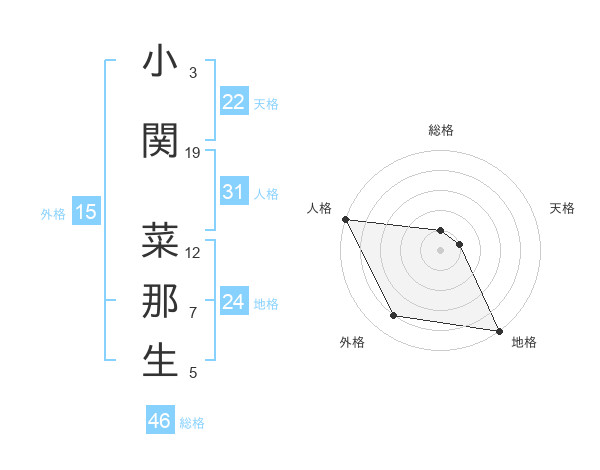 小関 菜那生さんを姓名の画数から五運を鑑定