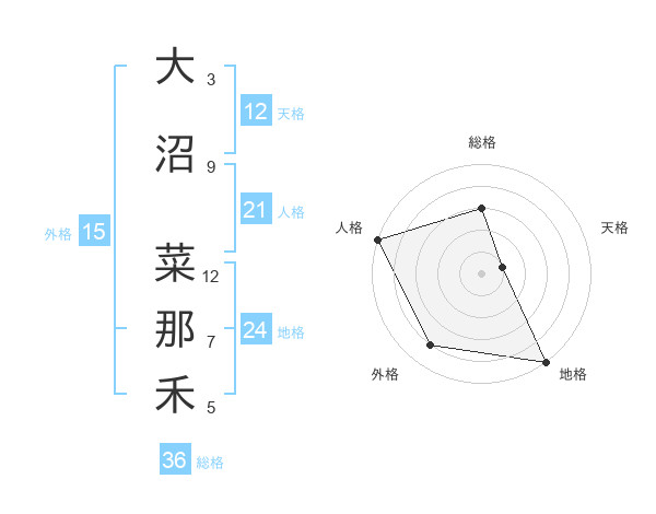 大沼 菜那禾さんの地格は24画の5点!