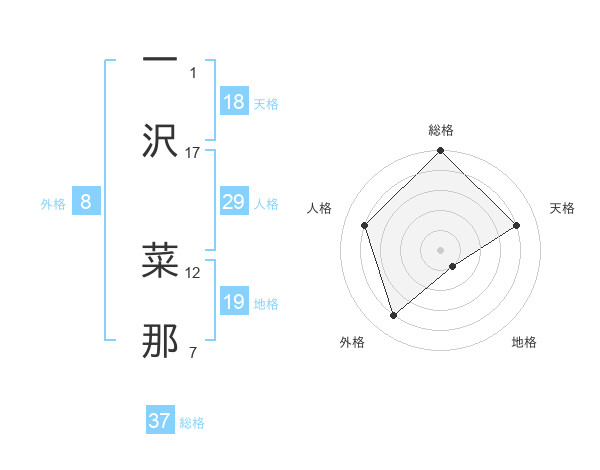 一沢 菜那さんを姓名の画数から五運を鑑定
