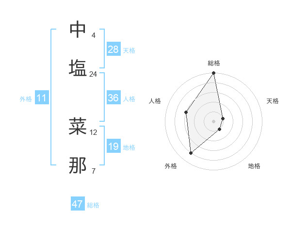 中塩 菜那さんを姓名の画数から五運を鑑定