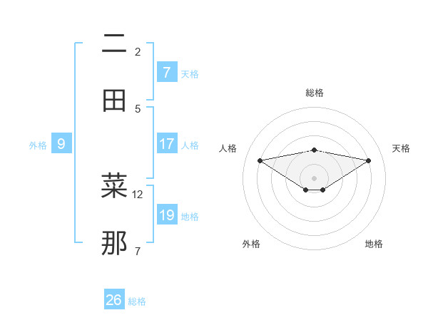 二田 菜那さんの総格は26画の2点!