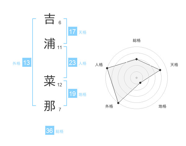 吉浦 菜那さんの外格は13画の5点!