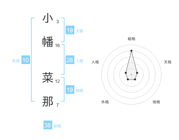 小幡 菜那さんを姓名の画数から五運を鑑定
