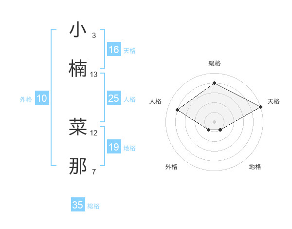 小楠 菜那さんの天格は16画の5点!