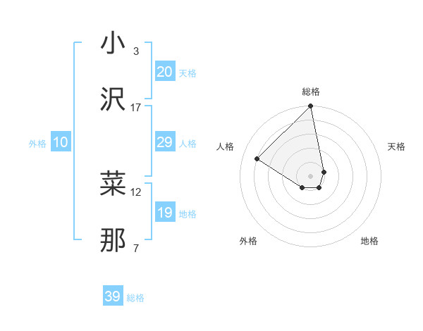小沢 菜那さんの総格は39画の5点!