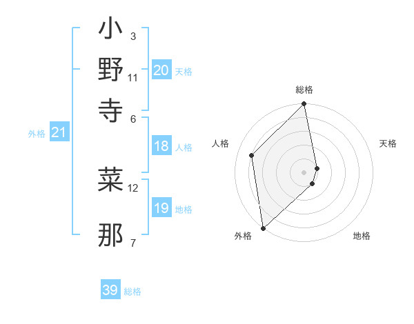 小野寺 菜那さんの外格は21画の5点!