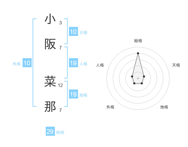 小阪 菜那さんの総格は29画の4点!