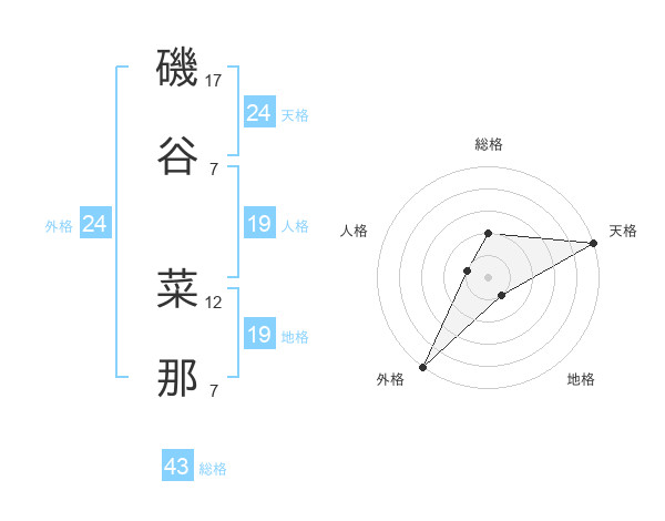 磯谷 菜那さんを姓名の画数から五運を鑑定
