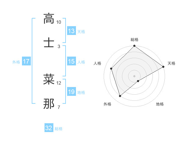 高士 菜那さんの天格は13画の5点!