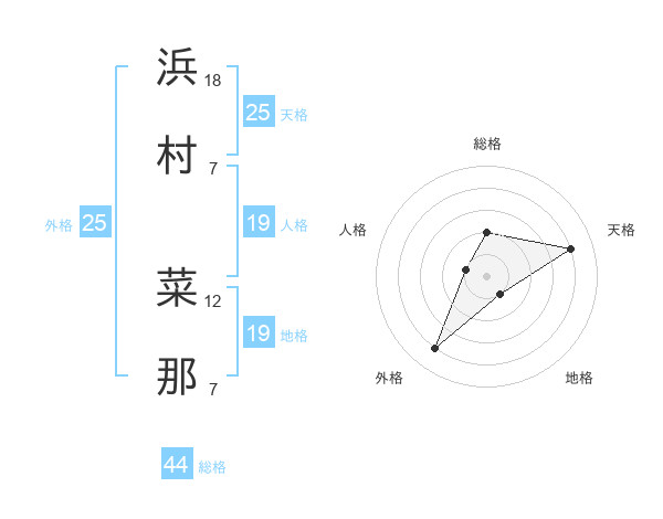 浜村 菜那さんの外格は25画の4点!