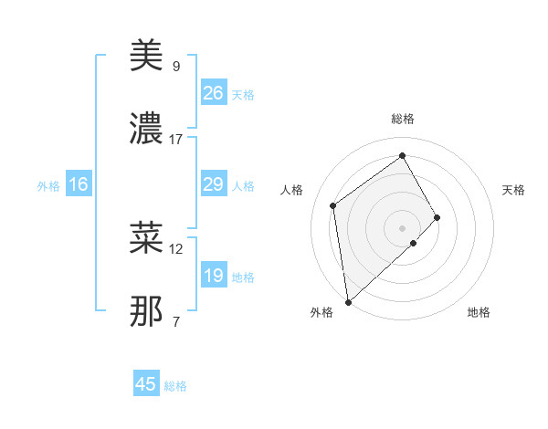 美濃 菜那さんを姓名の画数から五運を鑑定