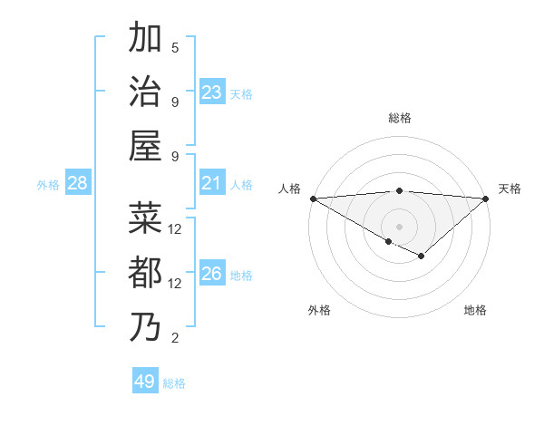加治屋 菜都乃さんの総格は49画の2点