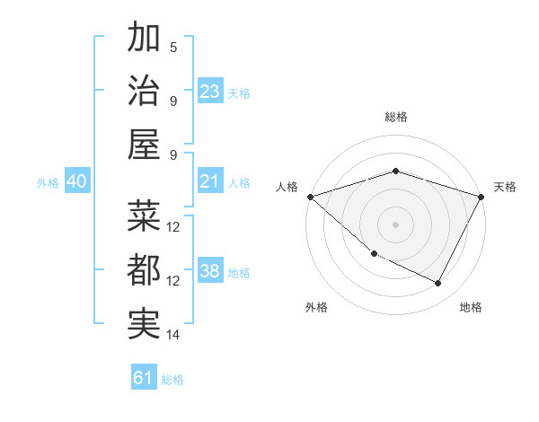 加治屋 菜都実さんを姓名の画数から五運を鑑定