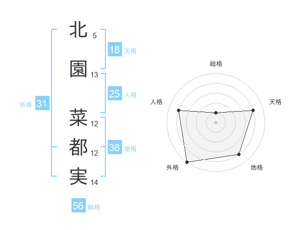 北園 菜都実さんを姓名の画数から五運を鑑定